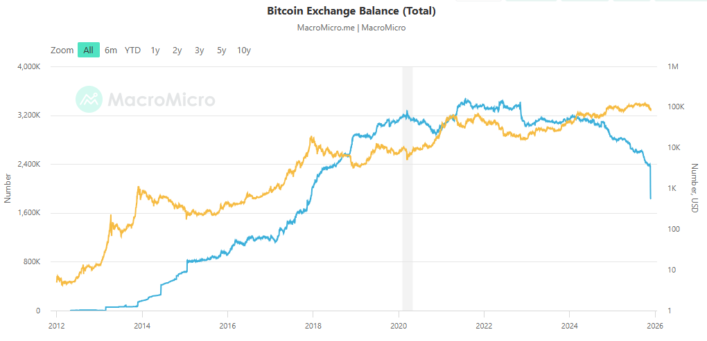 The current amount of BTC on CEXs is unusually low. This pattern is generally seen closer to cycle lows, rather than peaks.