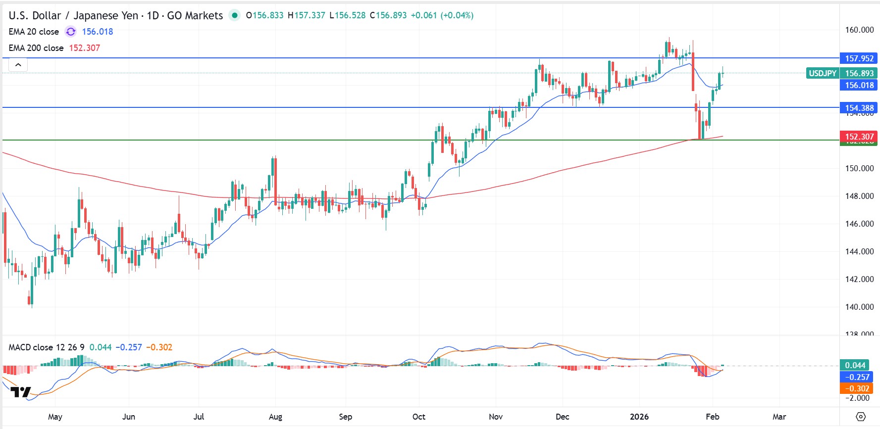 Checklist task: If sentiment turns risk-off, watch traditional haven assets such as the Swiss franc (CHF) and gold. Gold has seen large swings recently and is currently testing resistance near US$5,000. EUR/CHF may also see higher volatility if geopolitical headlines intensify during the Games.
