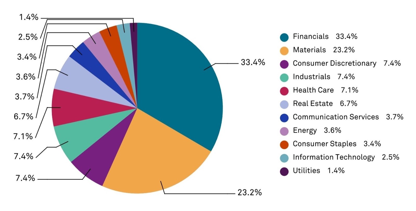 ASX sector breakdown as of 31 December 2025. Source: S&P Global